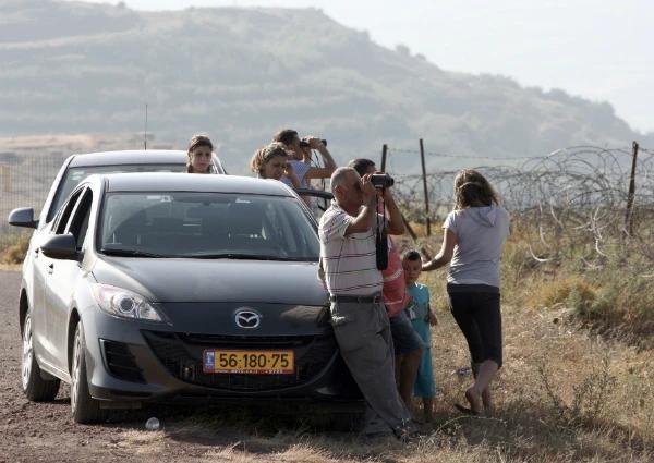 正在戈兰高地上远眺叙利亚战争的游客