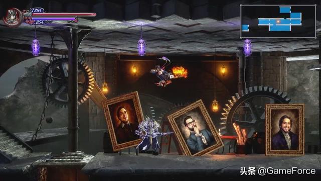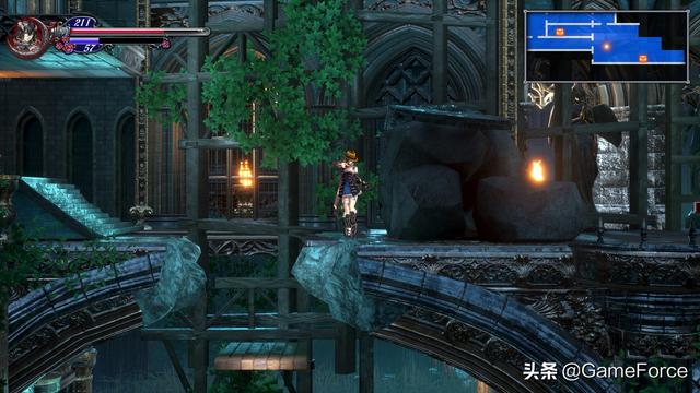 本作可以说是月下夜想曲的精神续作,非线性的二维地图仍然是整个游戏的大框架,世界环境看似四通八达,但在几个关键节点设置了障碍条件,玩家必须完成特定任务,获得二段跳、传送、重力倒置等特殊技能,方能继续前进。这种从1997年月下夜想曲开始出现的经典设计,巧妙地把开放世界和故事主线结合起来,成为了后续历代恶魔城的标志,玩家也是乐此不疲