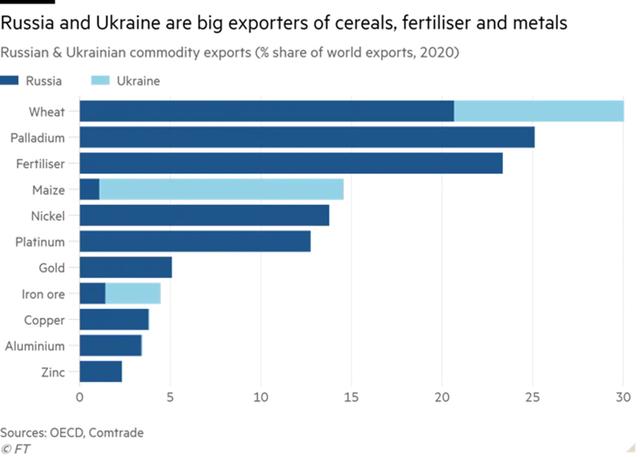 俄罗斯和乌克兰是谷物、化肥和金属的重要供应国