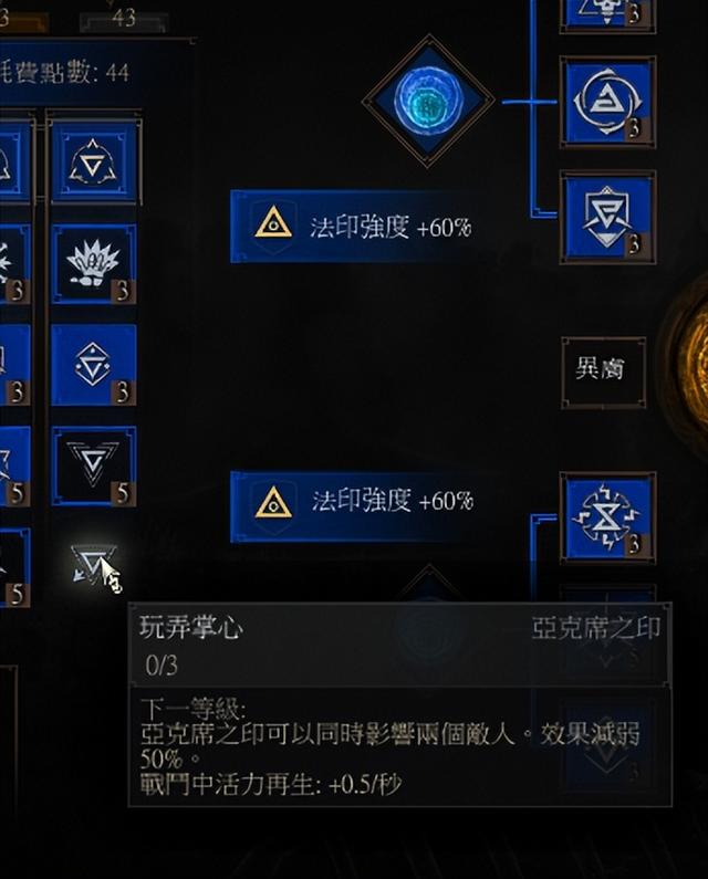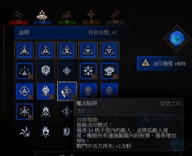 阿雨德法印还有另外两个加强的技能,但如果你不是专攻法印流派的猎魔人不建议你点,因为正常情况下需要用到的技能会很多并且大部分都是五级且需要点满的,所以在点技能之前一定要三思而后行,不过点错了也不用担心,中后期在诺维格瑞或者史凯利杰群岛都会有出售洗点药水的商人,需要的时候随时可以购买。