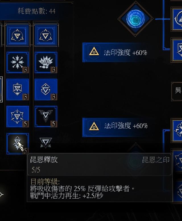 (我图中是死而无憾难度下硬抗路边水鬼好几下,浑身全部镶满了增加昆恩法印强度的符石,纯度拉满了)