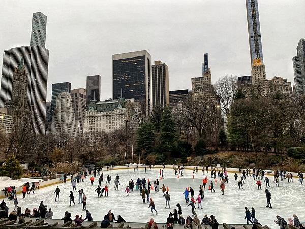 剧场、博物馆、音乐厅、体育场,乃至教堂,这些原本洋溢节日气氛的场所,至今大门紧闭。美国人辟邪般地唾弃2020年,12月5日《时代》周刊的封面直接就在黑色的“2020”上打了个红色大“✖”。但辞旧迎新的时代广场,没有迫不及待的汹涌人潮,隔着电视屏幕的除夕落球仪式,连烟花都那么寂寞。从1907年开始,纽约人就用这样的仪式迎接新年,与这次灾难类似的,恐怕就是1942年和1943年二战期间限制照明的死寂。是天灾?是人祸?抑或既是天灾又是人祸?元旦的中央公园,凄风冷雨,但满眼还是熙熙攘攘的口罩。住在公园附近的纽约人,多数属于可以居家工作或者是根本就无需工作的,在户外空旷处也戴口罩,这被他们自诩为一种“德行修养”。公园的游乐设施,似乎只有沃尔曼(Wollman Rink)溜冰场还开着——溜冰到底是纽约的冬季民俗。中场时候,磨冰车慢悠悠洒着水雾修补冰场,白色车身上硕大的黑色“特朗普(TRUMP)”标志,开过来,开过去,像特朗普本尊的嗷嗷的恨意。1980年,溜冰场年久失修而关闭,纽约市府斥巨资花了六年也没完成翻修。1986年,特朗普接管,三个月搞定,花钱少于预算;特朗普颇得意,把自己的大名以巨大的字号刷在围墙上、印在溜冰鞋出租台和员工的制服上。没曾想,2019年都在自己的总统任上,“反特朗普”就成了纽约的“政治正确”,场子边沿和制服等处的名字被抹掉,旗杆下营造商的名字改用了很小的字体。只有磨冰车来不及换新,还顶着刺眼的“特朗普”磨磨叽叽。是不情愿还是不甘心?世道与人心,政治与冰面,不知道哪个更冷酷。(图2)