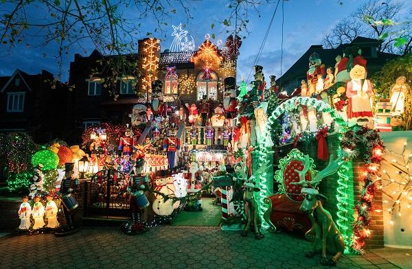 图4:2021年1月1日,纽约“戴克灯彩”创始者露西家的圣诞彩灯,格外夺目。