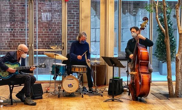 图11:2021年2月19日,重开的摩根博物馆延续了每周五室内乐慈善义演的惯例。戴着口罩的乐手在演奏爵士乐。