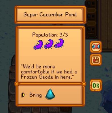 4、新增可以替换玩家身上衣服的换装系统5、可以自己剪裁和给衣服染色了。——需要自己准备布料(用羊毛纺的那种)和染色剂(目前试过榛子可以染棕色,绿藻和海藻可以染绿色)——基本上,所有东西都可以拿去做衣服。种出来的作物,吃的,怪的掉落,矿石,甚至刨出来的古物等等。——有的东西会做成一类,比如河鲜做出来的都是雨衣,但是会根据放进去的东西不同有不同的颜色或者花纹。——兔子脚会做成一件画着兔子脸的上衣。——意面会做出一件上面有意面汁子的上衣。——玫瑰仙子会做出一件长裙。6、新发型,现在你可以变成秃头了(肝露谷石锤了)7、新地形8、鱼塘。——建造材料需要石头,海藻草x5,绿藻x5。可以把鱼扔进去繁殖。(根据wiki,不止是鱼沙滩上捡的那些,比如珊瑚,也可以,传说鱼不行。)——可以一键清空鱼塘但鱼不会返还——不同的鱼会生产各自的鱼子(鱼子可以用罐头瓶压成酱,并用于电影院收集包的解锁。)——同一个鱼塘只能养一种鱼,最开始的最大数量只能容纳三条(根据wiki,会收到任务提升上限。)可以通过钓鱼取出其中的鱼,但只是普通的无星鱼。——鱼塘满容量以后会显示感叹号,右键会大概界面告诉你需要什么东西,把需要的任务物品右键扔进鱼塘,即可完成一次扩容。
