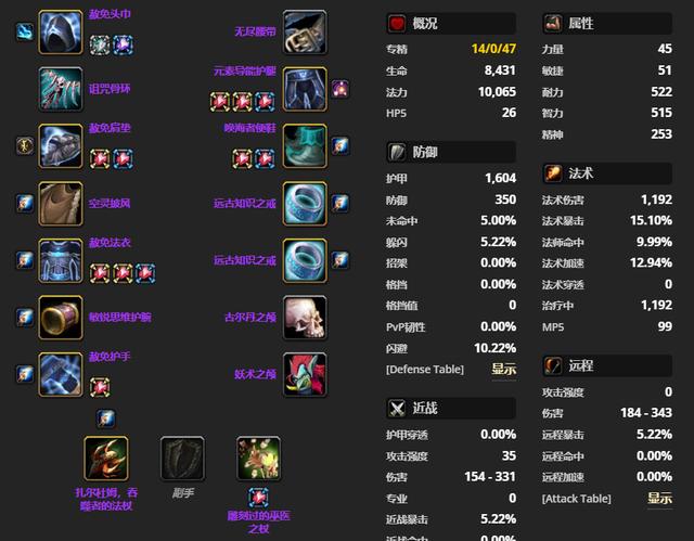 鸟德的配装思路和暗牧类似,也是走法伤急速路线,这一身装备可以提供1313点法伤、20.32%法术暴击、13.35%法术命中和11.29%急速,预期最高秒伤为1900点。鸟德是法系辅助DPS中唯一可以追上术士和法师尾气的专精。