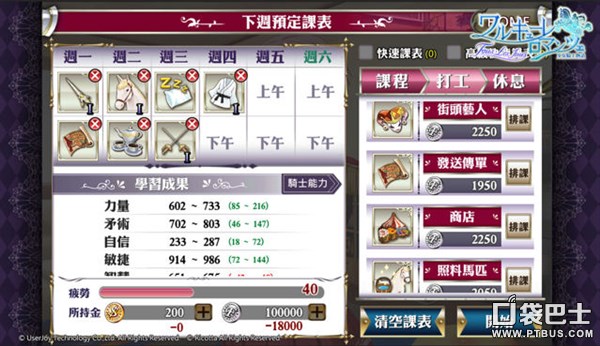 别忽视每周的排课,这可是会影响到骑士未来之路