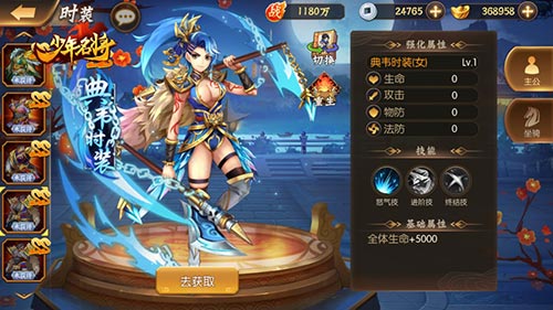 本次更新的神将时装众多,姜维、吕蒙、貂蝉、典韦等神将外观造型悉数登场,全新的人设立绘,带给你更帅更酷炫的视觉盛宴。每个神将都有男女两款不同的造型供你选择,即便是同样的典韦人物,男子装的豪气冲天与女子装的英气逼人,都能带给你非同凡响的视觉冲击,去战场上化身神将,力挑千军。