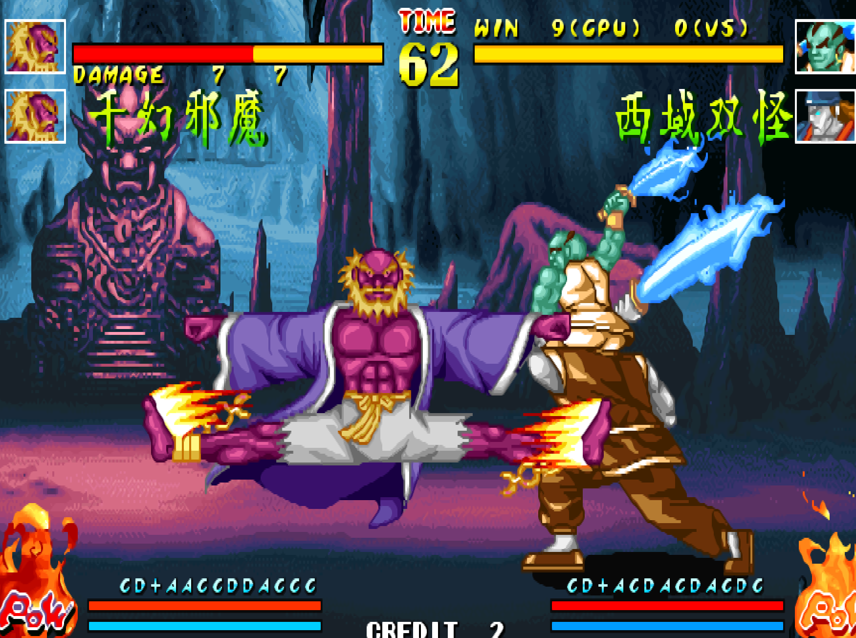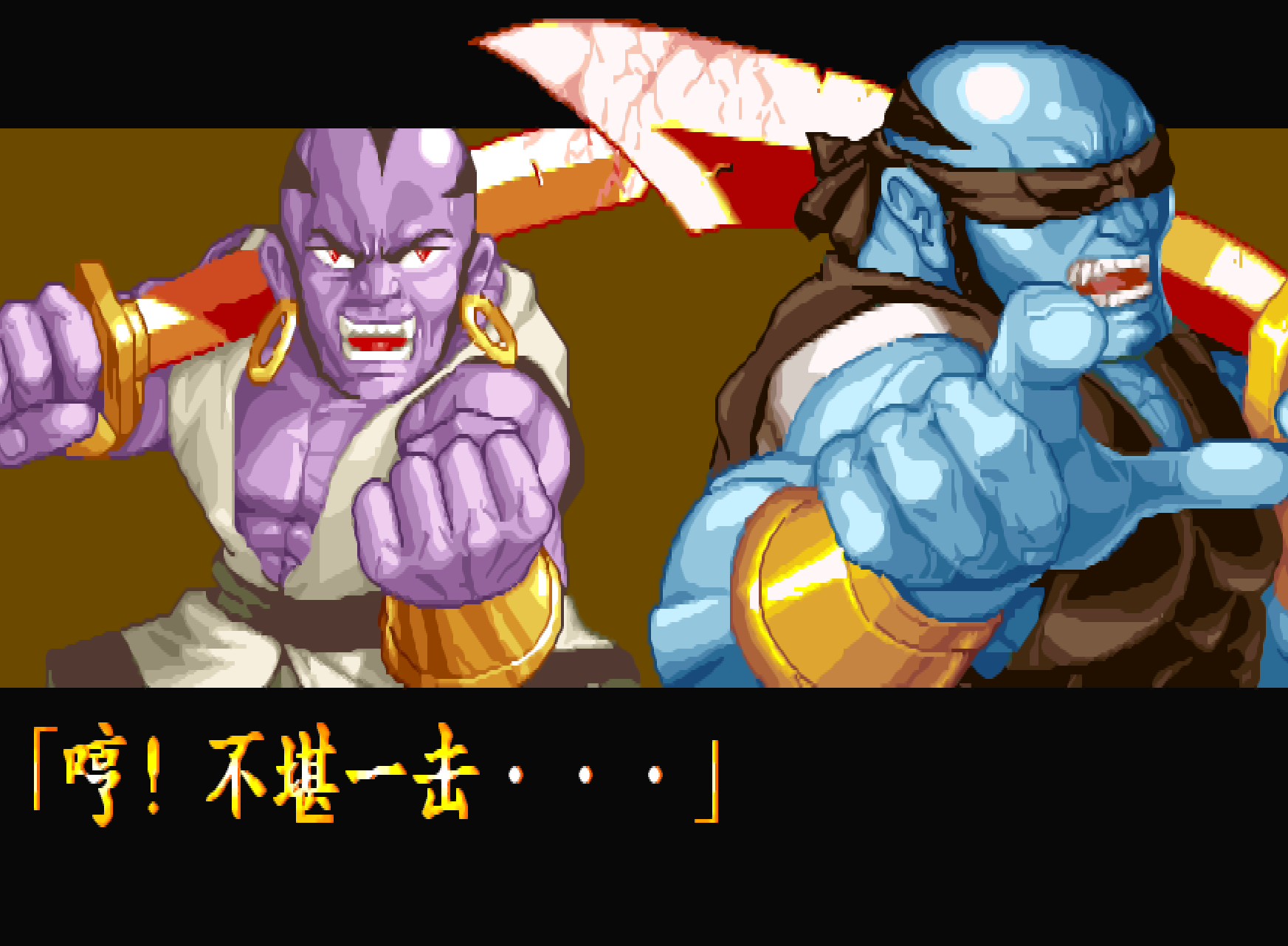 IGS的另一款格斗游戏《傲剑狂刀》同样可以使用隐藏秘籍来选用BOSS:西域双怪。