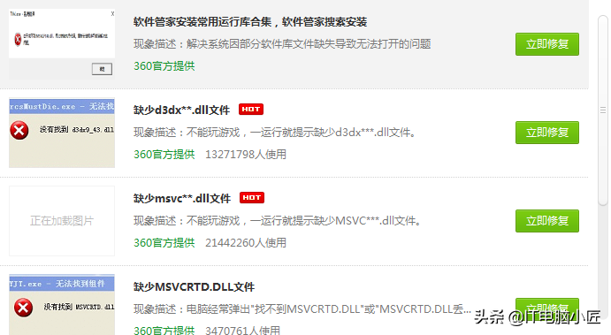 以上就是今天小匠给大家介绍的几种关于如何在电脑提示“缺失.DLL文件”时的修复方法,如果帮助到你,请支持转发一下。如果上述方法都不好使,那你还可以考虑重装系统然后重新下载软件,基本上缺失文件的问题重装系统决绝99%~