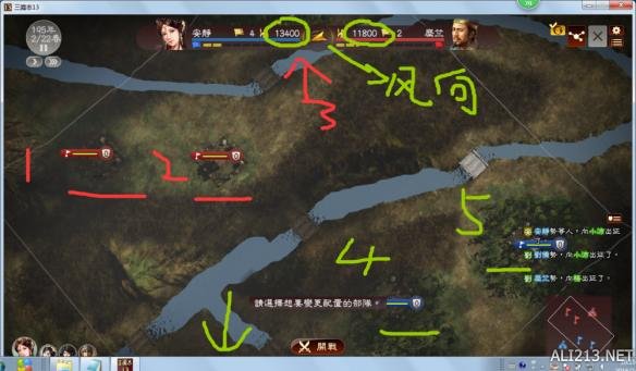 首先,战斗有风向(1标识位置)影响火计运用,有人说火计bug,其实你看低光荣了,夷陵之战,经典还原。前提是你有这个特技!!!会调动能跑到敌军本阵(这也是一大乐趣)!!!!当然玩溜了和san11飞将神算一样,可能很无趣