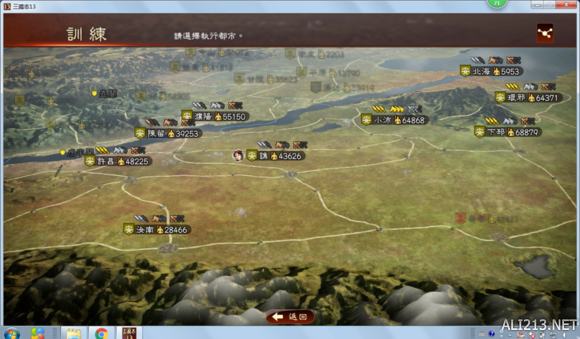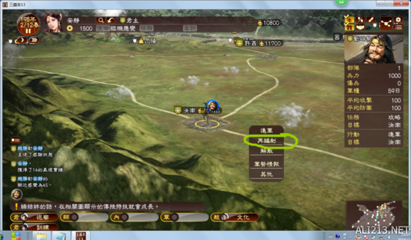 话说开征,刘备,三路大军只有我先到(远的城池别忘中途城市 “再编制” 加兵粮),图忘了截了(自己脑补),兵力没劣势,开打。这里说一下,兵都征跑了,自己城兵力很少了别人来打怎么办?不用担心,初期对玩家有缓冲期,而且丢了城还可以打回来,丢了人中期就难打了。实在担心就别打刘备,打刘表或者养城交朋友。