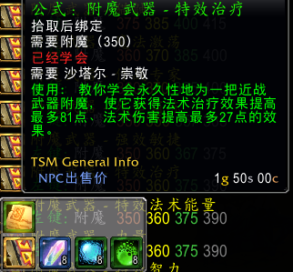 使其获得法术治疗效果提高最多81点,法师伤害提高最多27点的效果,沙塔尔崇拜声望购买