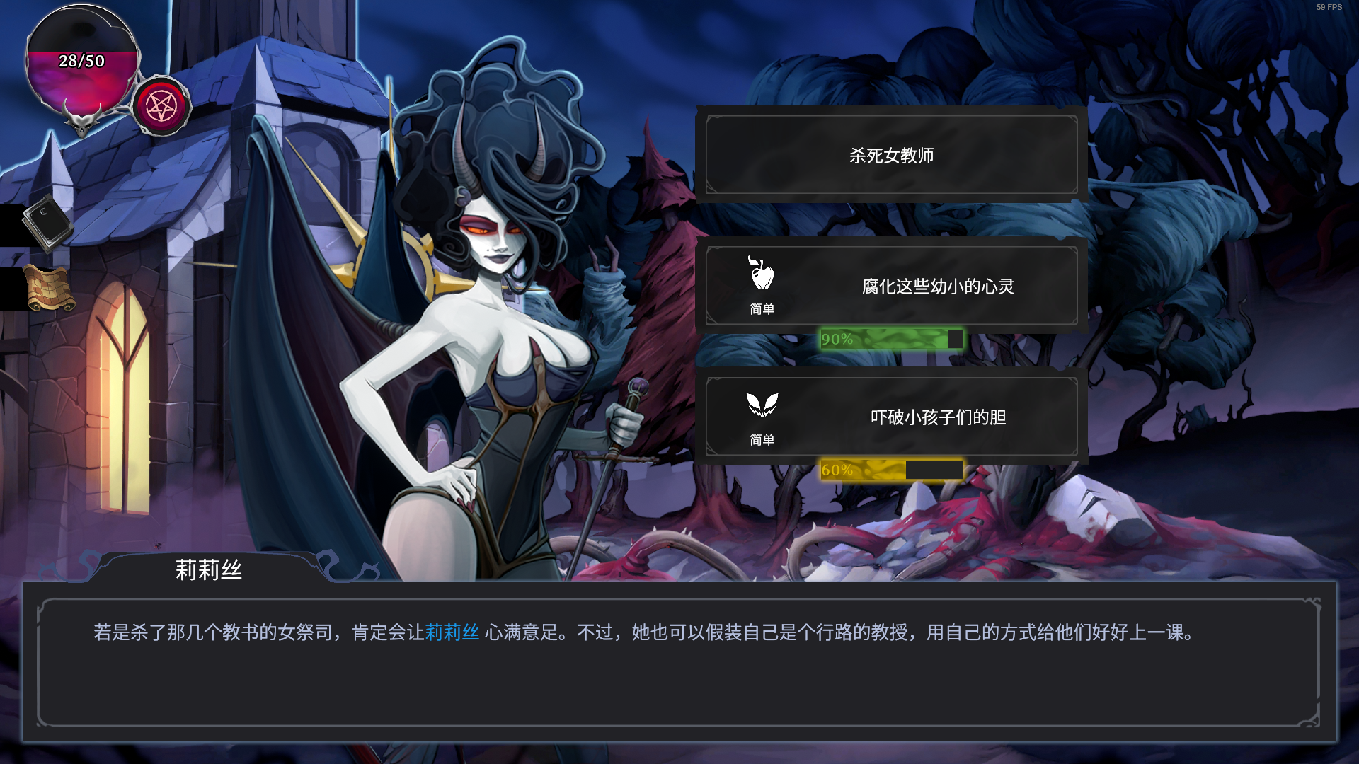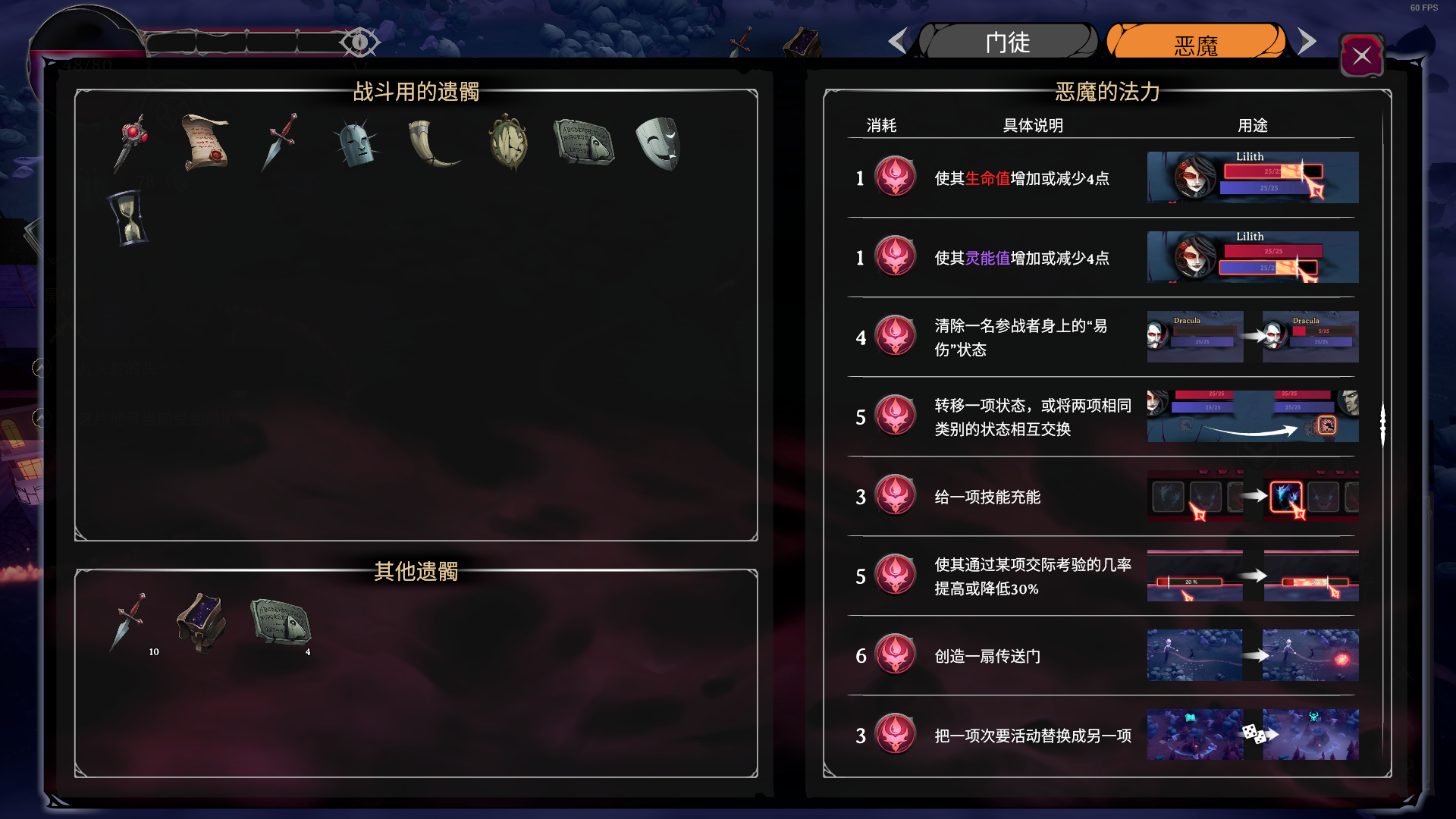 除此之外,本作也有不少自己的元素。最特殊的一点就是恶魔模式,其特点是可以消耗恶魔精华对敌方或者我方的生命以及灵能条进行调整,也就是说你可以消耗恶魔精华来恢复我方的血量,也可以直接消耗恶魔精华将敌人的生命清零。还有就是各种随机事件,队伍内部的勾心斗角,有可能带来增益BUFF,也可能是DEBUFF。当然,最重要的还是颇具特色的多名角色,通过不同的搭配组合能够打出不同的玩法。