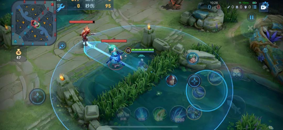 ③当兰陵王准备配合队友一起去抓中路时,如果中路的敌人正在清线,那么兰陵王只要不走进中路河道草丛,敌人便无法获得预警信号提示,因此兰陵王得是找准合适的时机再选择立即发动进攻,如此便可以有效提升抓人成功率。