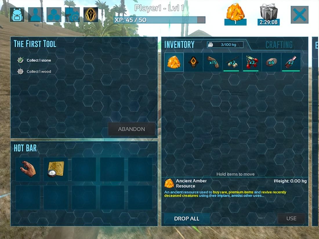 角色晋级同时会取得技艺点,一切物品都需求经过学习技艺才干得到。在前期技艺点并不宽裕的状况下,本人学习建造什么都是要一丝不苟的。所以最适合的状况是与一群好朋友配合着学习加点,才干够取得最佳的游戏体验。但是假定单人游戏的话,衣食住行都要八面玲珑。最根本的生存技艺有:斧子、篝火、水袋还有镐。在手游版方舟中,篝火能驱除冰冷以及加工食物、水袋会让人坚持水分、石斧或者矛能击退那些不长眼的小家伙,至于镐则是用来采集资源。无论是石头、植物还是动物都需求用镐来采集资源,不过很想吐槽用镐采集肉不会把肉弄烂吗?