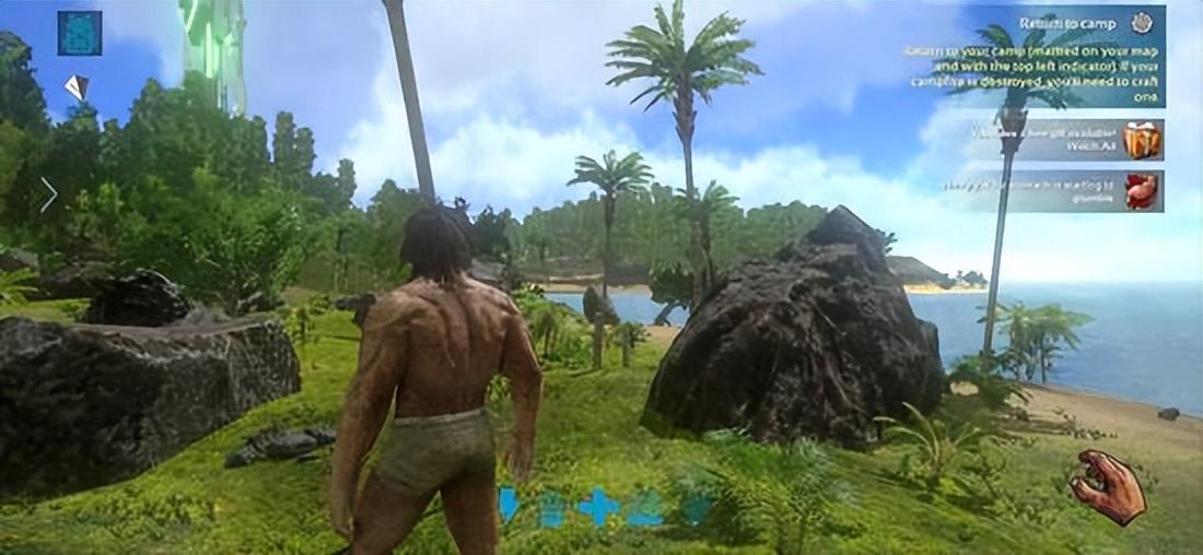 除了画面和设计的原汁原味,与复杂的系统相比,方舟手游的UI设计反而相当简约。整个游戏采用了隐形虚拟按键的设置,手机的左侧控制行进方向,双击左侧能够快跑,上滑左侧腾跃,右侧控制采集、打击等交互。左上角是背包,下方是角色生命耐力氧气等状态。左侧滑动是视角切换等指令,右侧滑动则是切换快键栏的物品。不用的时分两侧缩在一旁了如指掌,整个界面没有太多多余的东西相当清新。