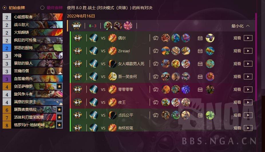 剑圣,吼爹这两张必须要,剑娘不带能提供一个后期12血的斩杀,实际需求并不大,屠戮者奥格拉需求更小,这套唯一真神是冲锋和狼人