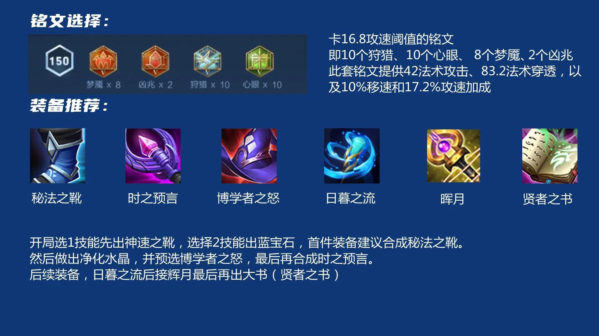 如果对面有回复性强英雄并且爆发很高的英雄呢,可以先买个鞋子,然后直接做进化水晶,再把抵抗靴给合出来,再然后核心装备博学者之怒。本赛季大书修改了越往后出伤害越高,所以先做这个帽子性价比是最高的。然后再把时之预言给合出来,提供这个双抗让我们更肉些。接下来就看阵容,如果此时已经开始逆风了,先做极寒风暴减冷却加坦度,再去做梦魇。如果没有逆风的话,正常做梦魇就可以的,然后再去做冰心,最后一件装备呢,我们来个虚无法杖。这是打对面爆发比较高,有恢复性阵容的一个出装。