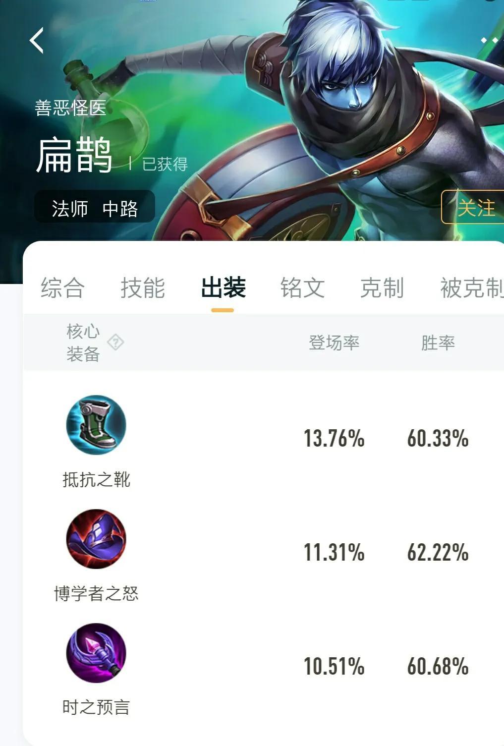 如果对面突进比较多,爆发也非常的高,你扁鹊很难生存,怎么出装呢?还是先买鞋子再做进化水晶。博学者之怒、时之预言,然后我们直接做辉月,再去做虚无法杖。最后我们再搭配一个炽热支配者,有这两件保命装在呢,生存率会大大提升,然后再给大家说一个大后期的出装,就双方僵持不下,我们需要改一下装备需要把辉月给卖掉,做这个贤者之书,然后再把鞋子卖了做成破茧之衣。基本上这样扁鹊接团能力,反打能力是比较强,至于移速什么的都大后期的双方就有一波团的事情,移速就没有那么重要了。