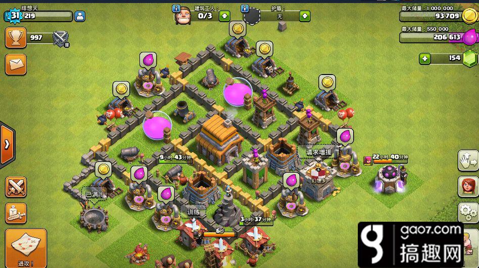 这个阵主能起到很好的圣水防御作用,同时大本也单独放出来,这样的话想要推平大本也首先要突破一层城墙才好。