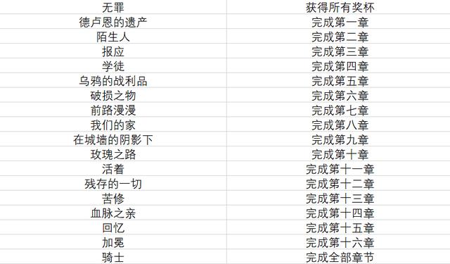 其中从【德卢恩的遗产】到【骑士】为流程奖杯/成就。