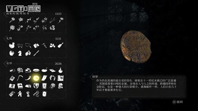 游戏中收集品会以白色高亮显示,已收集的内容会按顺序呈现在图鉴中以便于玩家随时查看物品信息(各种小科普)以及检查是否有遗漏物品(不过等发现自己忘记拿了东西的时候已经来不及返回上个检查点,只能以后重玩关卡的时候再拿了)。
