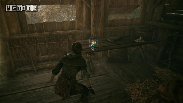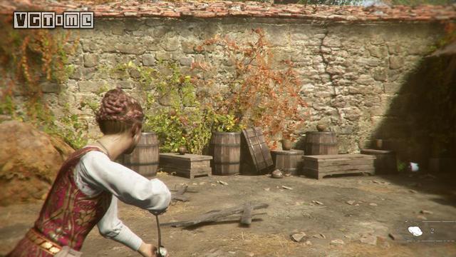 第一章,返回庄园后直走到尽头再右转,穿过木棚,把木桶上的陶罐用投石索全部打碎。