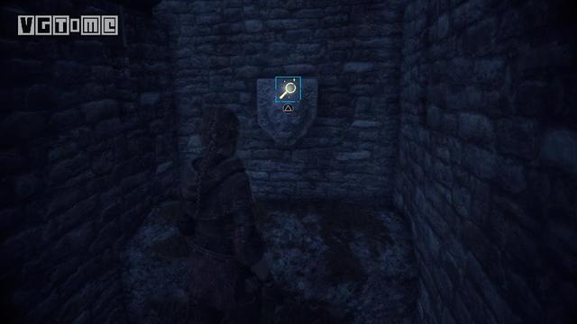 奇珍18-墓石残片:墓地内从可以推的箱子后面的墙上翻下去,在左边墙上挂着