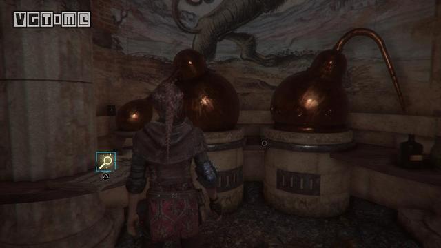 礼物8-炼金术坩埚:跟雨果从卢卡斯的工作室回到大厅后再跟随他前往下一个区域,进第一个门的左边地上