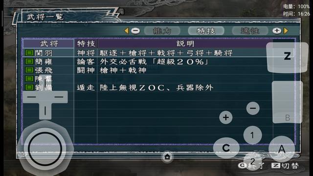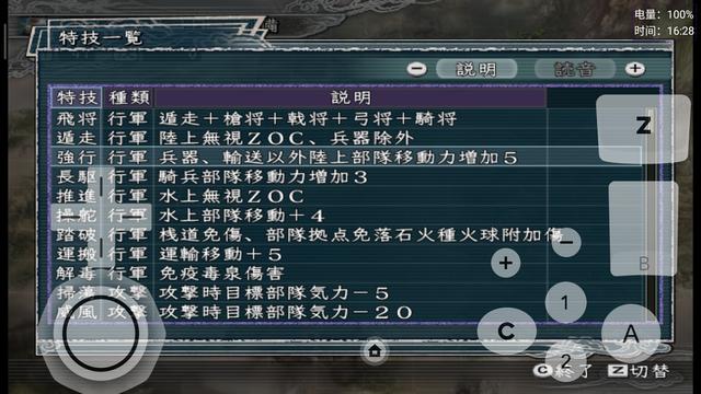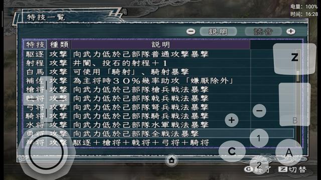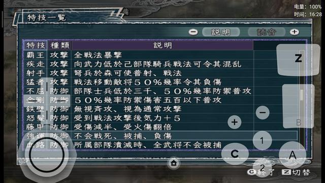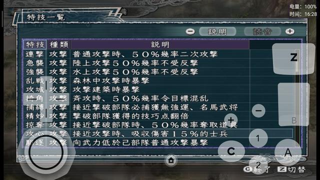 有部分特技名字进行了更正,比如说【扫讨】和【心攻】,明显是日语的读法习惯,星仔参考电脑版将这两个特技汉化成【扫荡】和【攻心】了。有部分的特技,加入了隐藏属性的描写。比如说【踏破】、【指导】等特技,具体有什么隐藏特效,还希望群友自行下载体验一番了。有明显组合性质的特技,则采取A+B+C的形式来进行描述,比如说【飞将】=【遁走】+【枪将】+【戟将】+【弓将】+【骑将】