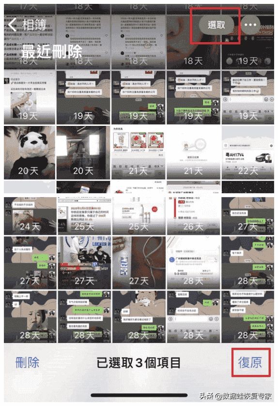 步骤二:选择需要恢复的照片,点击右下角的“还原”即可。