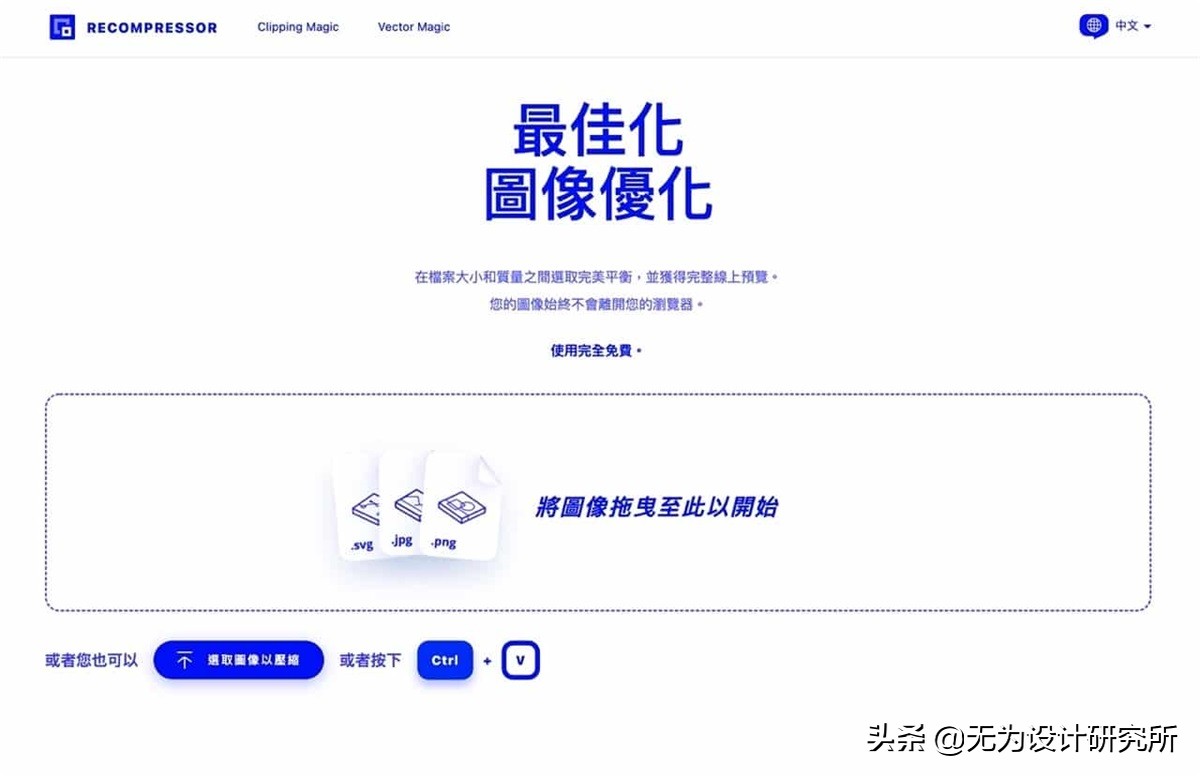 Recompressor 是一款免费图片优化工具,将图片拖曳到网页中就能处理,支持 .svg、.jpg 和 .png 三种格式,和其他同类服务不同的是 Recompressor 会自动进行多种压缩,产生不同图文件大小、压缩比和画质对比图,提供使用者最佳的压缩结果建议。
