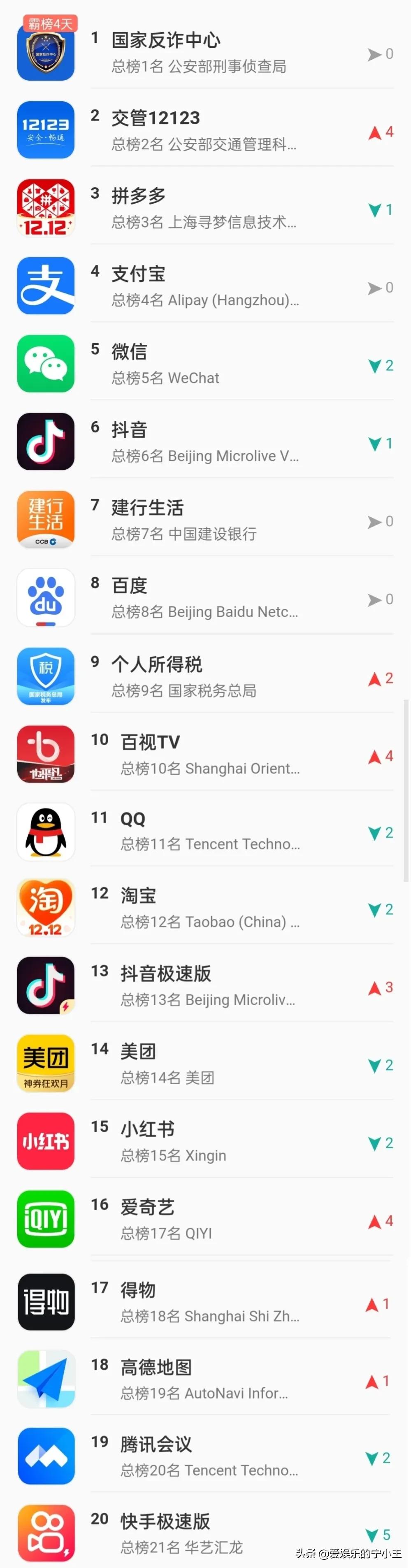 排名前两位的还是被咱们国家级的APP所占据,老铁们,你们有哪几个没下呢?
