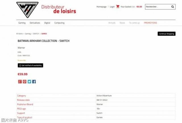 法国零售商WTT近日列出了Switch版《蝙蝠侠 阿卡姆三部曲》的页面,预计2022年8月31日发售,售价59.99欧元(约436元人民币)。