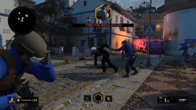 该视频展示了一个早期的战役任务,在里面玩家的任务是“找到Aquilus CEO”,一路突突突,穿过一个修道院和一个海鲜餐厅。很多模型还没有完成,但任务的核心架构尚在,看起来本作多人模式地图Seaside可能就是根据这一场景修改而来。