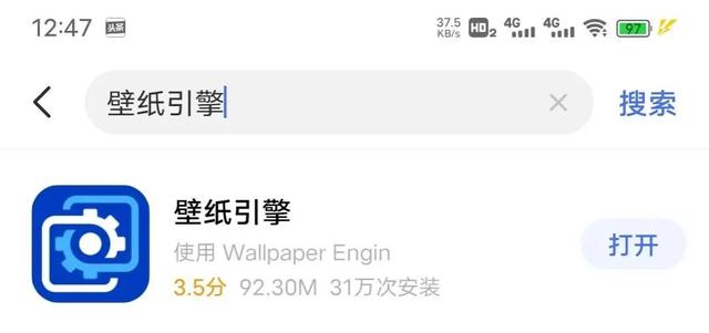 在应用商店里搜索“壁纸引擎”,是这个图案的为正版,其他均为假冒。