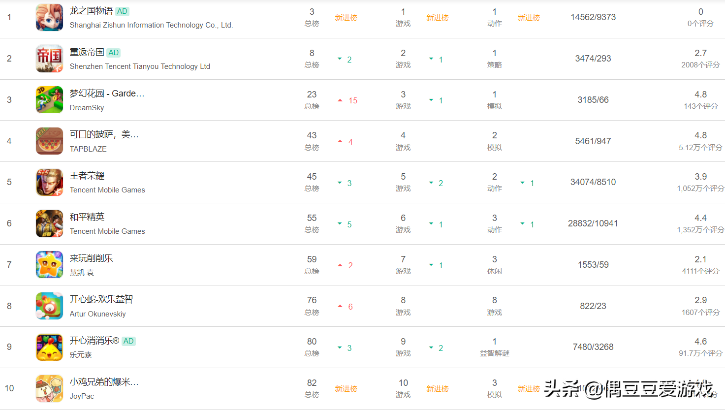 下面再来看看下载榜方面的变化: