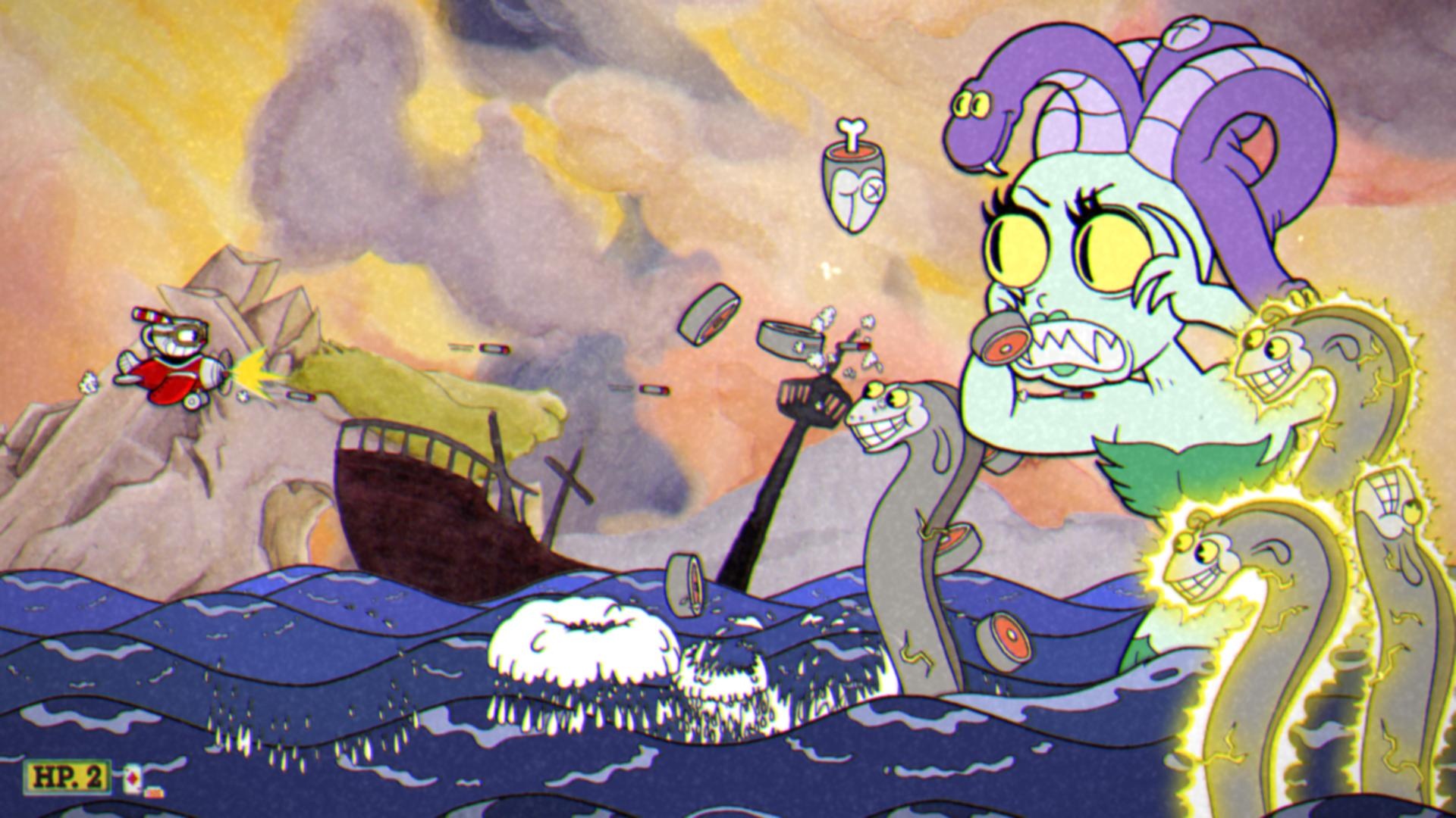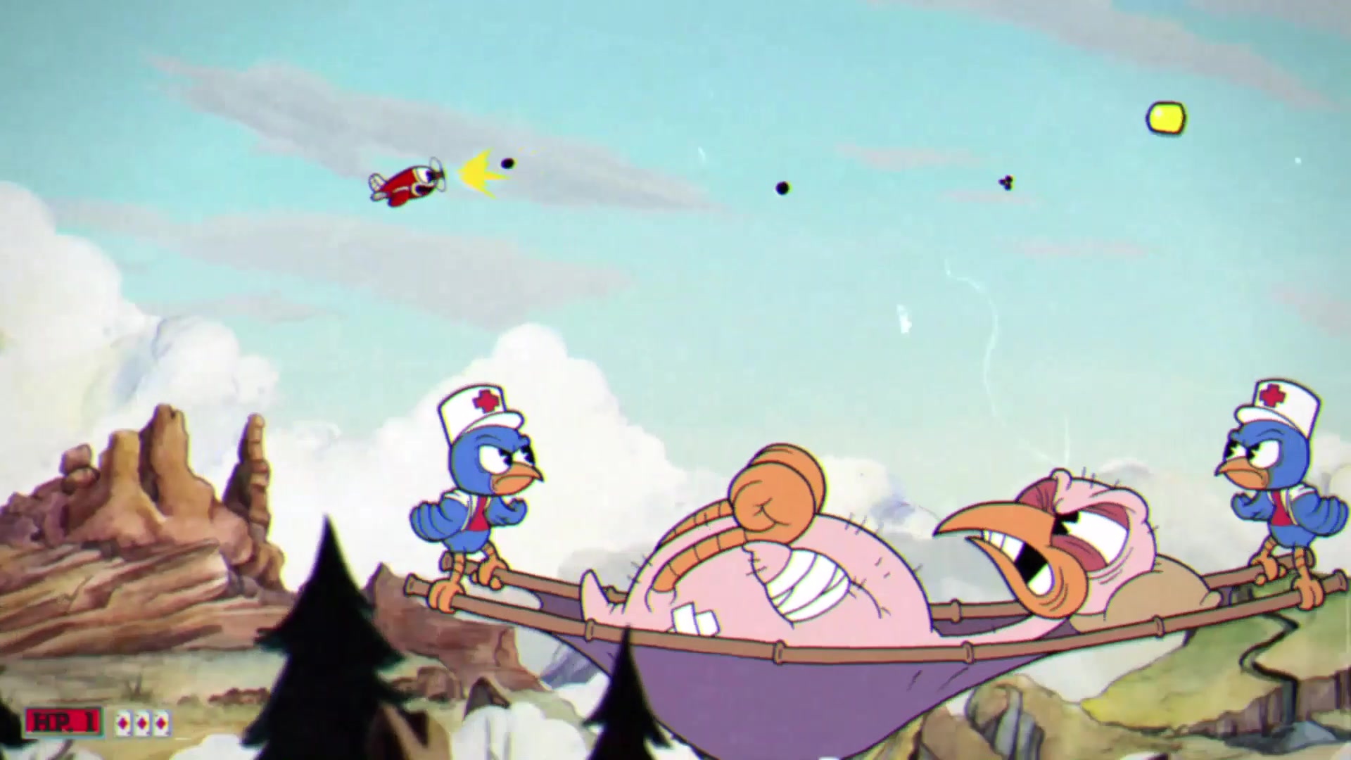 这款游戏是一款双人横版卷轴射击类游戏,画风非常复古,当然这是有意这样设计的,因为这款游戏是受1930年代动画片的启发而制的卡通风格游戏。