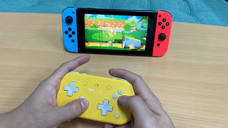 由于分离式的设计,十字方向键之间的间隔距离比较大,操作起来既没有滞涩感也不会有误触的情况。八位堂Lite蓝牙手柄虽然没有配备真正的实体按键,但是数字按键的操作依旧非常的顺手。