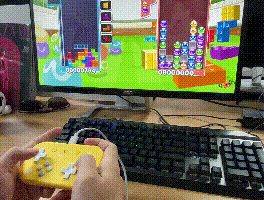 最后我们将拨杆拨动至“X”模式,用八位堂Lite蓝牙手柄在Windows平台上来进行游戏的体验。今次在PC上选择的是非常经典一款益智类游戏《俄罗斯方块》。