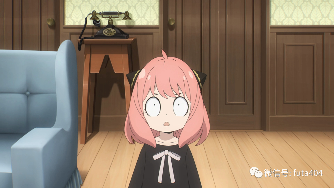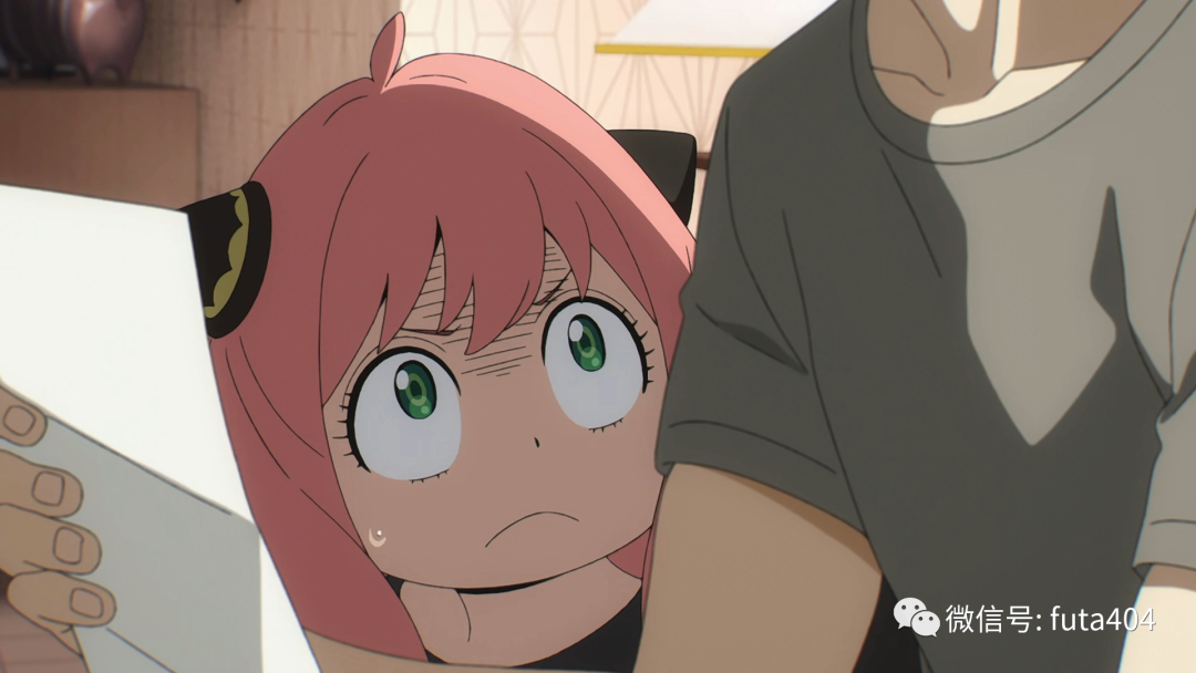 为了组建家庭自然需要收养孤儿,特别是管理和手续混乱的孤儿院最方便,于是“女儿”阿尼娅登场,阿尼娅是能够读懂内心的超能力者,凭着这个能力顺利被男主角收养,动画里会有一小段音效和少量的光点特效来表现出阿尼娅在读心。