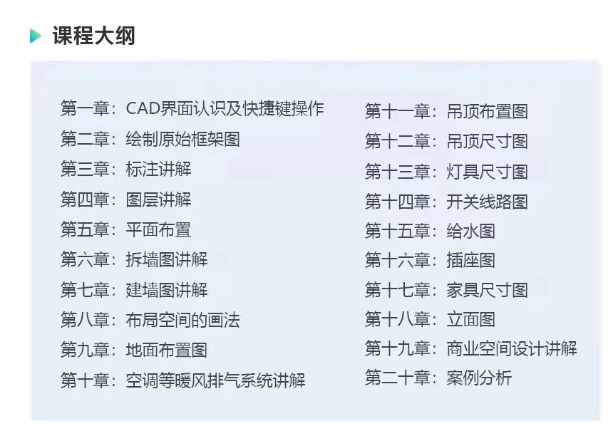 学习CAD必须要达到完整绘制出一整套施工图,可以指导施工,才算学合格了。不然,仅学个软件本身,发挥不了什么实际作用。