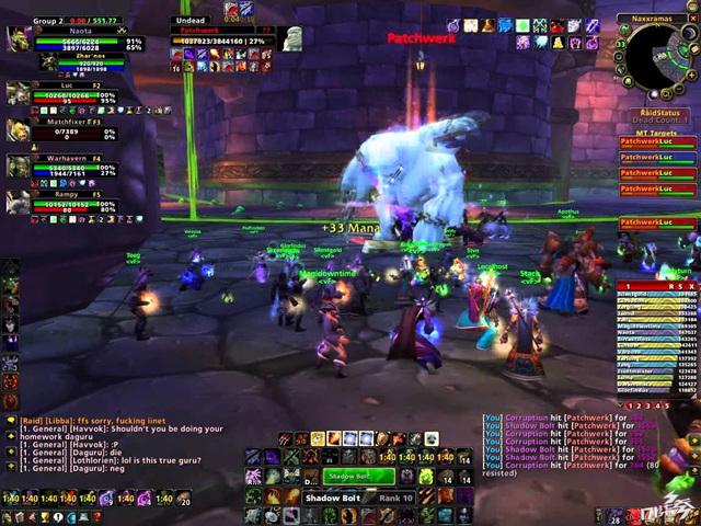 第三次接触它则是2006年。当时我正在用一台别人淘汰下来的速龙机器玩WOW,印象里是纳克萨玛斯刚开没多久,我们在开荒瘟疫区的帕奇维克。帕奇维克前有一大块地方全是怪,五六个一组,还有什么软泥怪会喷酸液之类,开打起来就卡。再加上之前蜘蛛区的小蜘蛛也卡,教官区的小怪也卡……我深深感到老机器已经不行了,于是就买了一台酷睿2E6320+7600GT的机器,顿时感觉鸟枪换炮。从此头也不疼了喉咙也不痒了,后来开荒开到克尔苏加德的时候满大厅都是小怪也游刃有余了(当然另一方面因为我是个术士,当时RL说了只要你不死,保住MT有小鬼然后记得绑灵魂石就行)。团灭的时候RL喊速度死!我转头一炮就轰向小怪,眼看那一大堆小怪冲过来,那画面都不带卡顿的……