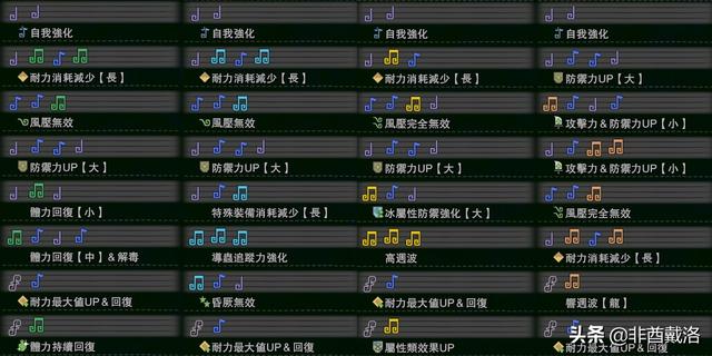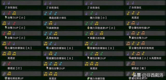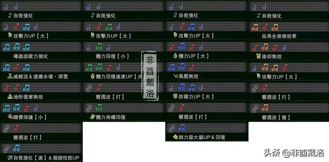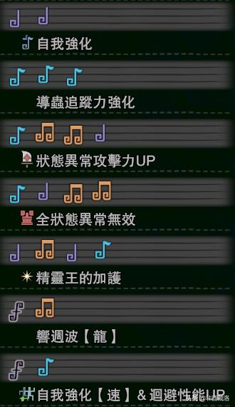 稍微说下狩猎笛的选择,一般来说,旋律【攻击】是必不可少的,如果是用来单刷的话,可以直接选择旋律【攻击】4,如果是用来组队的话,3会比较好。