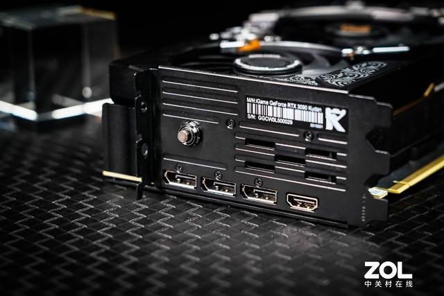 视频输出接口采用DP1.4*3+HDMI 2.1*1的4接口设计,HDMI 2.1接口可支持单线8K的视频输出。七彩虹标志性的一键超频按钮在这张显卡上依旧得到保留,初持状态为1695MHz,与公版相同,按下后开启超频模式,Boost频率达到1860MHz。