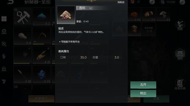 其实蘑菇还有别的用途,那就是分解成香料。1个蘑菇放到研磨器里可以分解出2个香料。