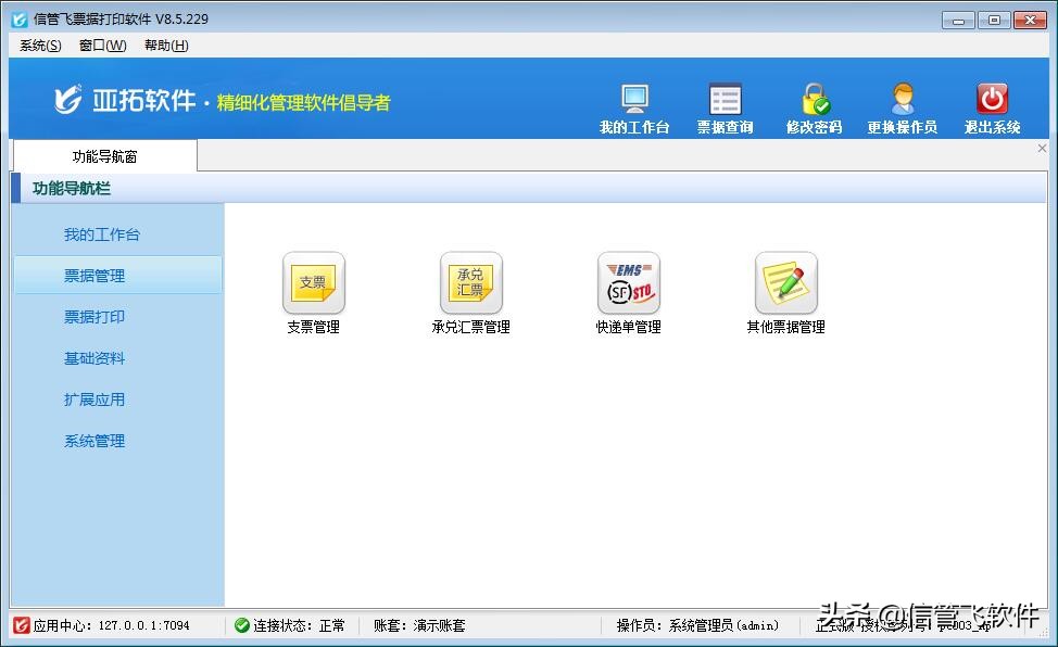 信管飞票据打印软件就是亚拓软件旗下的一款非常好用的打印软件。打印软件在如今的企业管理工作中很常见,快递单打印、标签打印、支票打印、银行进账单打印、银行电汇凭证打印等各种票据打印。