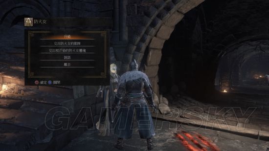 后期得到被污染的防火女灵魂,交出,提供治愈黑暗印记服务【结局有关,找防火女治愈黑暗印记会导致跟隆道尔阵营成为敌对关系】