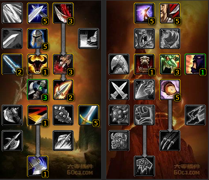 狂暴天赋方面没什么争议点出刺耳怒吼,血之狂暴挨打回血及狂怒挨打增加自身额外伤害。武器方面3点强化断筋,15%的几率无法移动持续5秒,这是比较常见的PVP天赋。